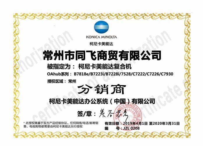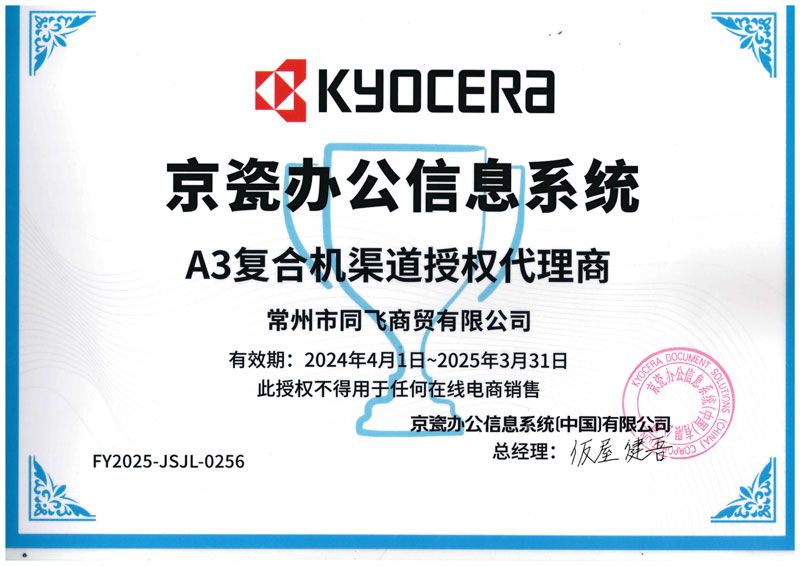公司取得了日本京瓷復印機、打印機,映美針式打印機、天威耗材、安興紙業(yè)等眾多知名品牌常州地區(qū)代理權(quán)。